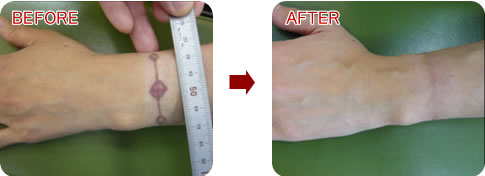 手首付近は皮膚に余裕がないため比較的小さくしか皮膚を切除できません。