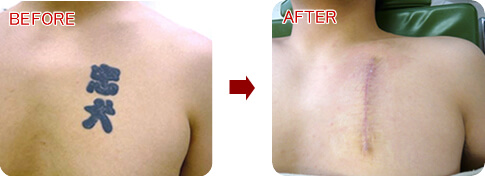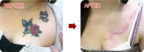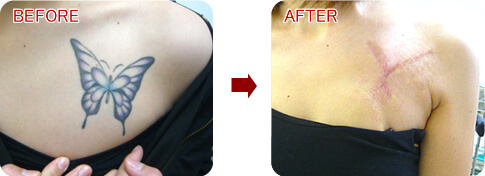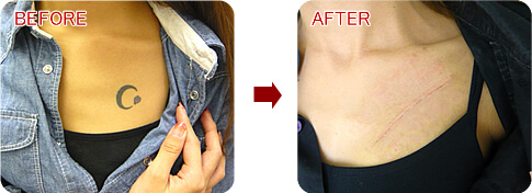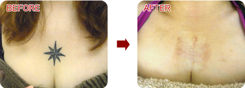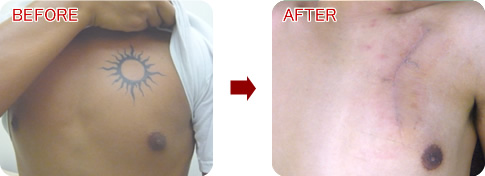 女性の場合、胸には皮膚のゆとりがあるため比較的大きなデザインも除去可能となります。